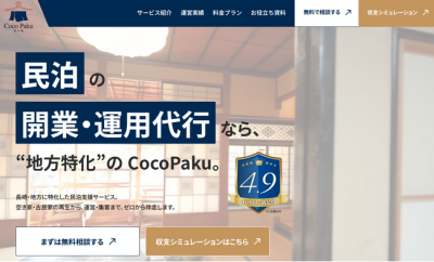 地方特化の民泊運営代行・開業支援サービス「CocoPaku」を公開