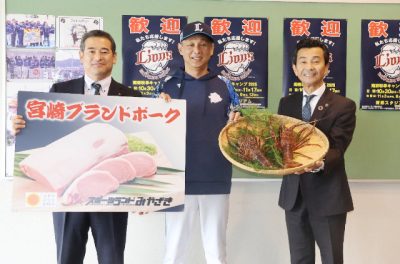埼玉西武ライオンズに激励品贈呈 日南市南郷で秋季キャンプ開始