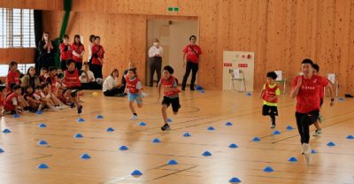 桐生祥秀選手、都城でかけっこ教室 児童120人と真剣勝負
