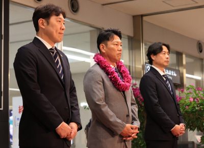 「侍ジャパン」本県入り 宮崎空港で歓迎セレモニー