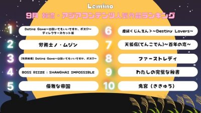 9月のLemino韓流・アジア人気ランキング発表!! 『Dating Game~口説いてもいいですか、ボス!?~』 ディレクターズカット版が3ヵ月連続で1位にランクイン!