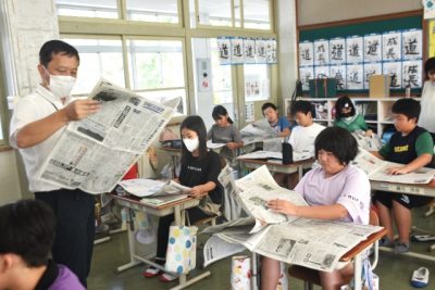紙面読み方 こつ学ぶ 国富「宮日新聞の日」授業 森永小