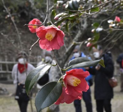 延岡 城山のヤブツバキ見頃 色とりどり3300本