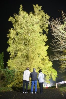 闇の中に鮮やか去川大イチョウ 宮崎市高岡