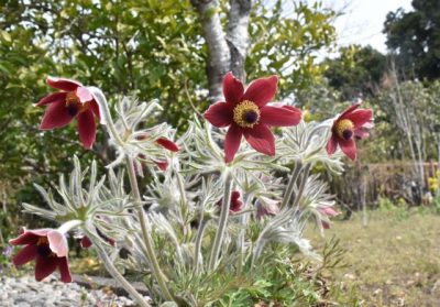 2022/03/17地域の話題希少植物のオキナグサが、都農町南新町の河野員子さん(90)方で咲き始めた。赤紫色の花が庭のあちこちで顔をのぞかせ、春の訪れを告げている。 オキナグサはキンポウゲ科の多年草で、全体が白い毛で覆われている。河野さん方では「30~40年...
