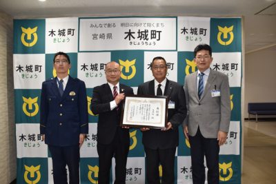 2021/11/26県内一般ニュース木城町の交通死亡事故ゼロ期間が4380日となり、県交通安全対策推進本部(本部長・河野知事)から25日、表彰を受けた=写真。2009年11月6日から12年間、死亡事故は起きておらず、現在継続中の県内最長記録を更新している。 交通死亡...