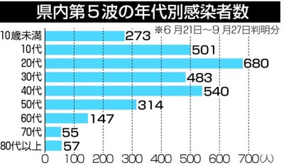新型コロナ 県内第5波感染 40代以下8割、家族・親族間が35%
