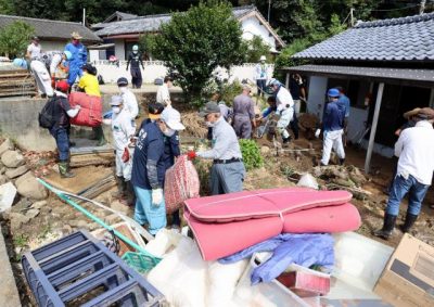 ボランティア100人超 復旧に汗 大雨被害 宮崎市内海