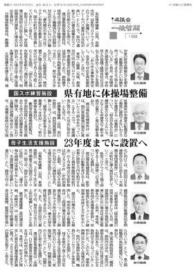 2021/03/02紙面から/1日目/国スポ練習施設/県有地に体操場整備/母子生活支援施設/23年度までに設置へ 右松隆央議員(自民、宮崎市区)は新型コロナウイルスのワクチン接種について「タクシーやバス業界は公共性が高い」とした上で、県内で運転手らへの優先接種...