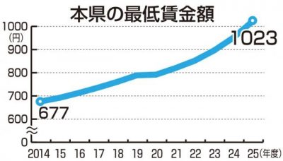 宮崎県最賃 初の1000円超え 1023円、過去最大71円上げ