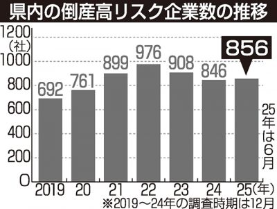 2025/10/15経済一般企業が1年以内に倒産する確率を示す指標「倒産予測値」を帝国データバンクが算出(6月時点)したところ、県内の企業は全体の5.4%に当たる856社が「高リスク企業」で、半年前に実施した前回調査(昨年12月時点)から10社増加した。業種別では製...