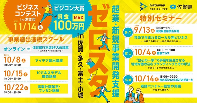 公益財団法人佐賀県産業振興機構学べるスクール・特別セミナー・ビジネスプランコンテストを開催します! RYO-FU BASE(公益財団法人佐賀県産業振興機構さが産業ミライ創造ベース)では、起業や新規事業を創出するため、全国や世界に向けて...
