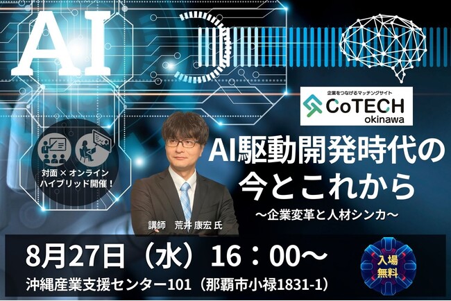 ISCO 沖縄県からの委託を受けて運営されているビジネスマッチング『CoTECH okinawa』は、 2025年8月27日(水)セミナー『AI駆動開発時代の今とこれから~企業変革と人材シンカ~』を開催します。 ーAIがコードを書く時代、...
