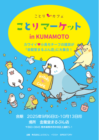 株式会社ことりカフェ明屋書店や金龍堂にて小鳥モチーフのグッズまみれのポップアップストアを開催! 「小鳥たちを眺めながら、まったりコーヒータイム♪」をコンセプトにした「ことりカフェ上野本店」(http://kotoricafe.jp/)を運...