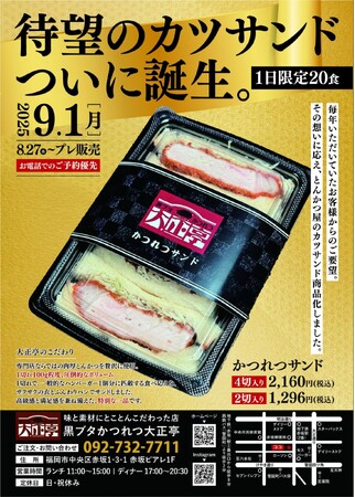 株式会社アトラス・コミュニケーション福岡県福岡市で飲食店「黒ブタかつれつ 大正亭」を運営する株式会社アトラス・コミュニケーション(本社:福岡県福岡市、代表取締役:川口祐也)は、創業以来初めての販売となる「かつれつサンド」を2025年9月1日...