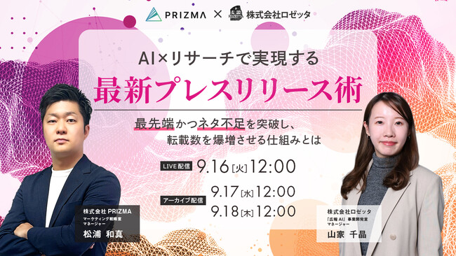 株式会社PRIZMA企業の認知度向上や信頼獲得に不可欠な「メディア転載」を爆発的に増やすための秘訣を、たった60分で完全公開! 「プレスリリースを一生懸命書いたのに、全然メディアに掲載されない…」 「そもそも、プレスリリースのネタがない...