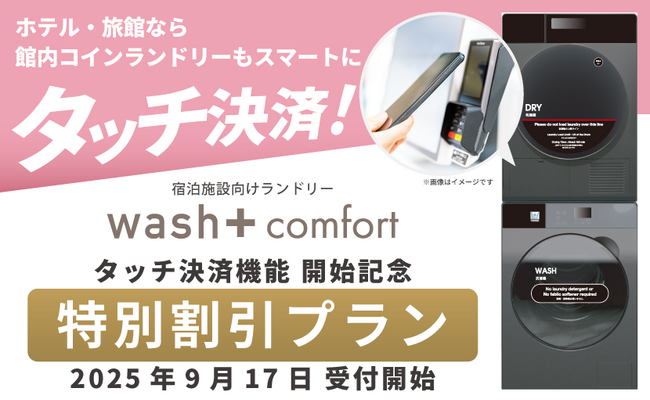 株式会社wash-plusホテルランドリー業界最先端の「タッチ決済・バーコード決済」案内開始記念、アレルゲンフリーのランドリーがもっと気軽に導入できるプランが限定登場 株式会社wash-plus(本社:千葉県浦安市、代表取締役:高梨健太...