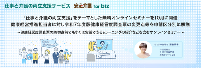 株式会社エス・エム・エス~健康経営度調査票の締切直前でもすぐに実践できるeラーニングの紹介などを含むオンラインセミナー~ 株式会社エス・エム・エス(本社:東京都港区、代表取締役社長:後藤夏樹、東証プライム、以下「当社」)は、「仕事と介護の...