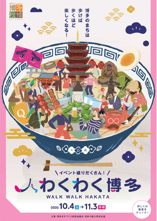 九州旅客鉄道株式会社博多まちづくり推進協議会では、昨年に続き「わくわく博多(WALK WALK HAKATA)」を開催します。「わくわく博多」は、数ある博多の歴史・文化・食の魅力を発掘し、博多に訪れる方々だけでなく、周辺地域で暮らし、働く方...