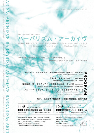 株式会社ペイメントフォー「チケットペイ」は、『Absolute-MIX Presents 2台ピアノとパーカッションで巡る~バーバリズム・アーカイヴ』のチケット発売を開始しました。 バルトークの名曲《2台ピアノとパーカッションのため...