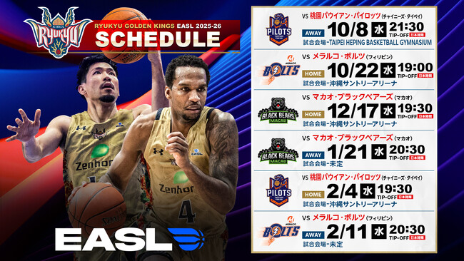 琉球ゴールデンキングス この度、東アジアスーパーリーグ(EASL)より発表がありました通り、EASL2025-26シーズンのグループステージ全36試合の試合開始時刻および開催会場が発表されました。キングスはホームゲームを3試合戦い、ホーム...