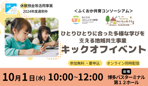 一般財団法人ちくご川コミュニティ財団10/1 博多区でキックオフイベント開催 休眠預金を活用した新規事業 まだ支援につながっていない不登校の子どもと家庭を支援する 3年間の事業 一般財団法人ちくご川コミュニティ財団(所在地:福岡県久留米...