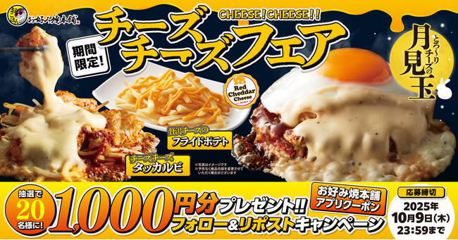 物語コーポレーション 株式会社物語コーポレーション(本社:愛知県豊橋市/代表取締役社長:加藤 央之)が、全国20店舗展開中の『お好み焼本舗』(以下、おこほん)は、「チーズチーズフェア」の販売を記念して、本日より公式Xにて「お好み焼本舗アプリ...