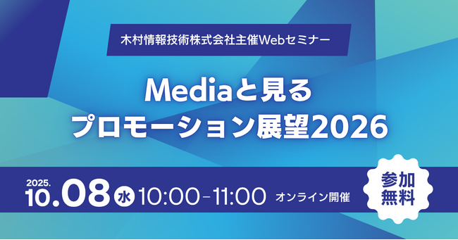 木村情報技術株式会社 木村情報技術株式会社(本社:佐賀県佐賀市、代表取締役:木村 隆夫、以下「木村情報技術」)は10月8日(水)、製薬企業様向けにWebセミナー「Mediaと見るプロモーション展望2026」を開催いたします。 本セミナーでは...