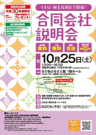 筑後地区観光協議会うきは市 うきは市商工会・田主丸町商工会が「地域事業者に特化した求職者向けの合同会社説明会」を開催します。 うきは市と田主丸町は、筑後川の恵みを受けた自然あふれる、穏やかな地域で、この特性を活かした農業、観光、製造...