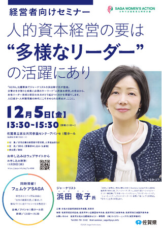 株式会社サイズラーニング佐賀県主催 経営者向けセミナー「人的資本経営の要は“多様なリーダー”の活躍にあり」 ダイバーシティ&インクルージョン・人的資本経営を軸に人材開発・組織開発を支援する株式会社サイズラーニング(本社所在地:福岡県中央...
