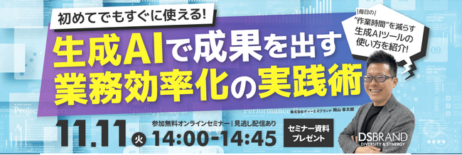 株式会社ディーエスブランド初心者でも明日から使える生成AI活用術や、AIチャットボットによる顧客対応自動化を解説 AIチャットボット搭載の接客型MAツール『おりこうAIコンシェルジュ』を提供する株式会社ディーエスブランド(本社:長崎県長...