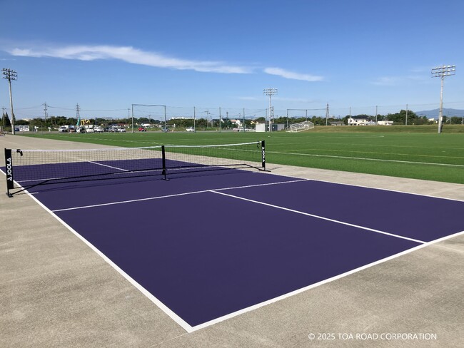 東亜道路工業株式会社COSMOS(熊本県フットボールセンター)俯瞰写真 ■この度、東亜道路工業は熊本県上益城郡嘉島町にある熊本県フットボールセンター(愛称:COSMOS)施設内に、ピックルボール専用コート2面を施工しました。 ■ピックルボ...