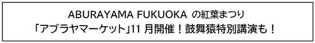 九州旅客鉄道株式会社 ABURAYAMA FUKUOKA(福岡市南区)は、10月に続き、11月も大好評の「アブラヤマーケット」を開催します!“豊かさにふれるマーケット”をテーマに、こだわりの詰まった食や雑貨が並び、生産者との交流を通じて ...