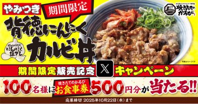 【焼きたてのかるび】期間限定「背徳にんにくカルビ丼」販売記念Xキャンペーンを開催
