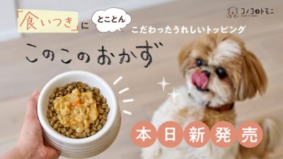 このこのごはんシリーズ累計販売数370万袋(※)突破のコノコトトモニから、愛犬の食いつきと健康を叶えるトッピングフード「このこのおかず」が本日発売!【株式会社ゆずず】