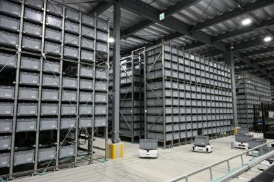 26台の搬送ロボが縦横無尽に商品を入出庫。作業負荷軽減し、ピッキング作業が効率化